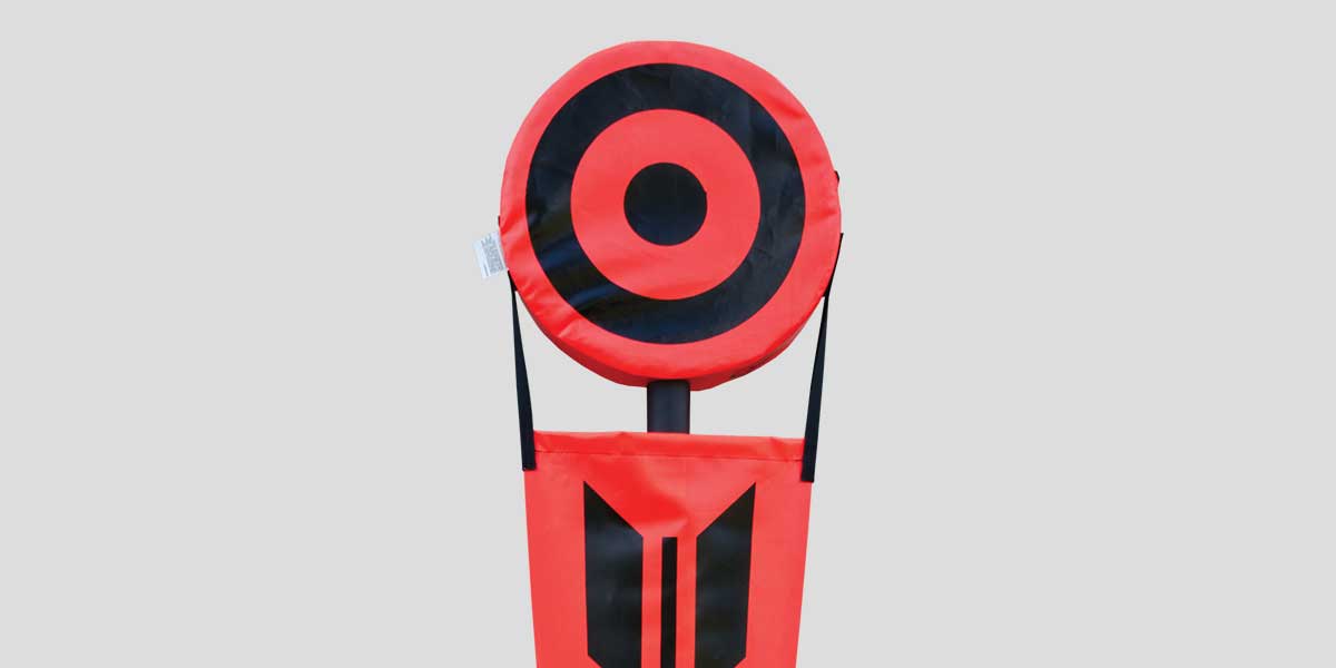 Fisher's 7' Varsity series chain set has fully padded galvanized steel poles with crutch tip ends to protect the field and players. The set meets NCAA and NFHS regulations.