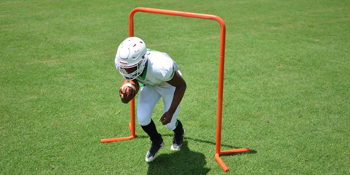 The Agility Chute is a great way to teach backs and receivers to keep their pad level low and maintain a low center of gravity.