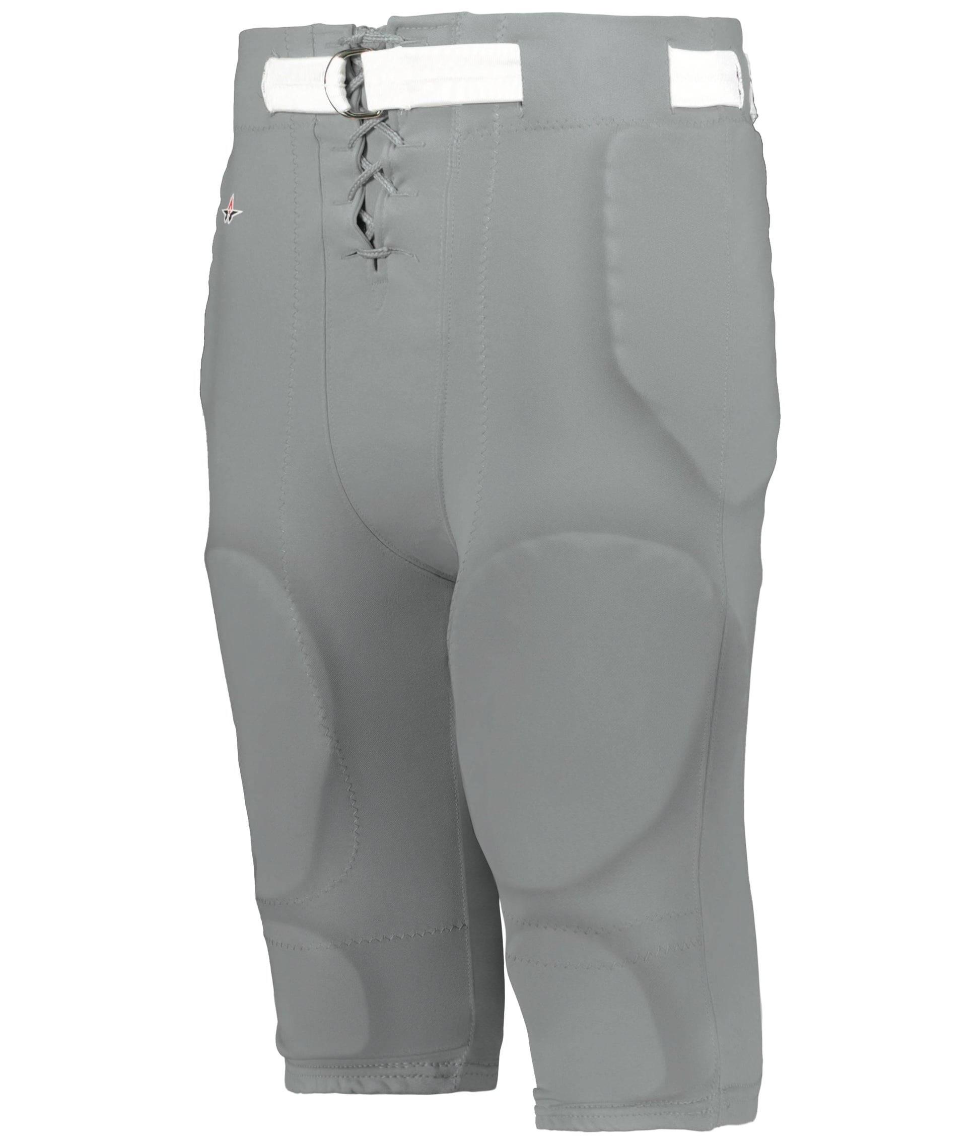 * 12-ounce, 100% double-knit polyester* Slotted elastic waist with duke crotch* Mesh thigh and knee pad system holds pads firmly in place* Elastic cuffs